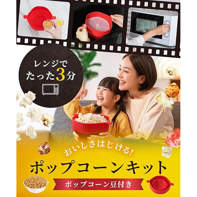 ※塩、オイル、フレーバーなどの調味料は付属しておりませんので、別途ご用意ください。18歳以上の大人が調理してください。ポップコーンは4歳未満の子供に与えないでください。(ポップコーン対象年齢4歳以上)