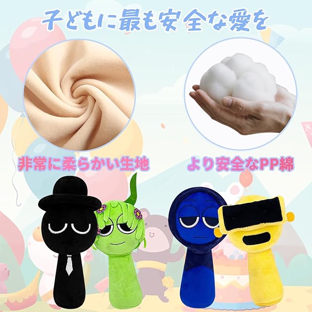 【良質材質】:柔らかくて抱きしめたり握ったりするのに快適なこのSprunki ぬいぐるみをきっと気に入っていただけるでしょう。良質なウール材質を用いて製造し、内部は環境に優しいPPコットンで満たされており、弾力性に優れ、毛羽立ちや色あせのない短い豪華な生地が施されています。