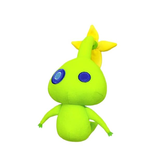 『ピクミン4』に登場するヒカリピクミンのぬいぐるみ。蓄光加工が施された生地を使用しているため、光を当てると暗いところで淡く光るよ!※環境により光り方は異なります。