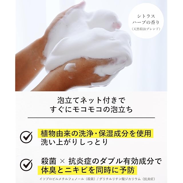 【泡で守る、新習慣】泡立てネット付きで濃密泡が摩擦レス洗浄。肌がつっぱらず、使うたび整う。