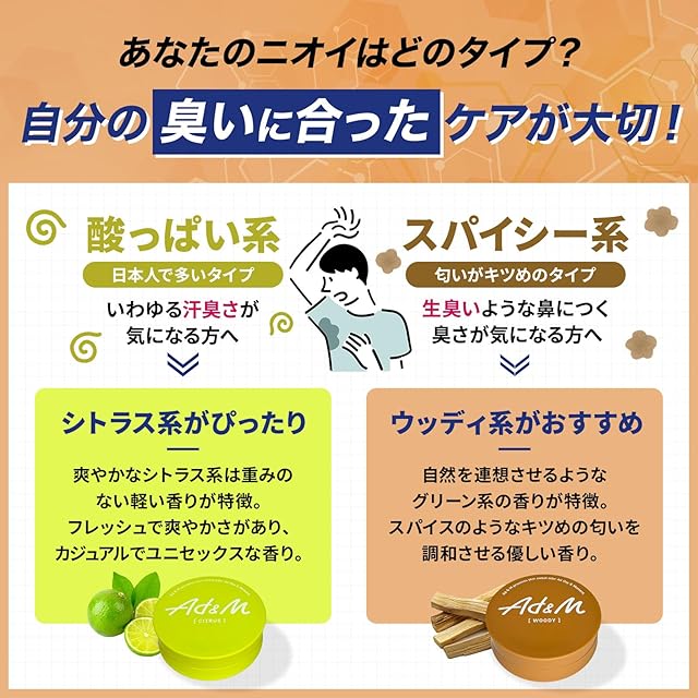 【✅体臭のタイプに応じた徹底ケア】汗の臭いが気になる方には、フレッシュで爽やかな香りが特徴の「シトラス」か、香りが苦手な方や子供さんにもおすすめな「無香料」を。匂いがキツめで気になる方には森などの自然を連想させるような甘い香りが特徴の「ウッディ」がおすすめです。