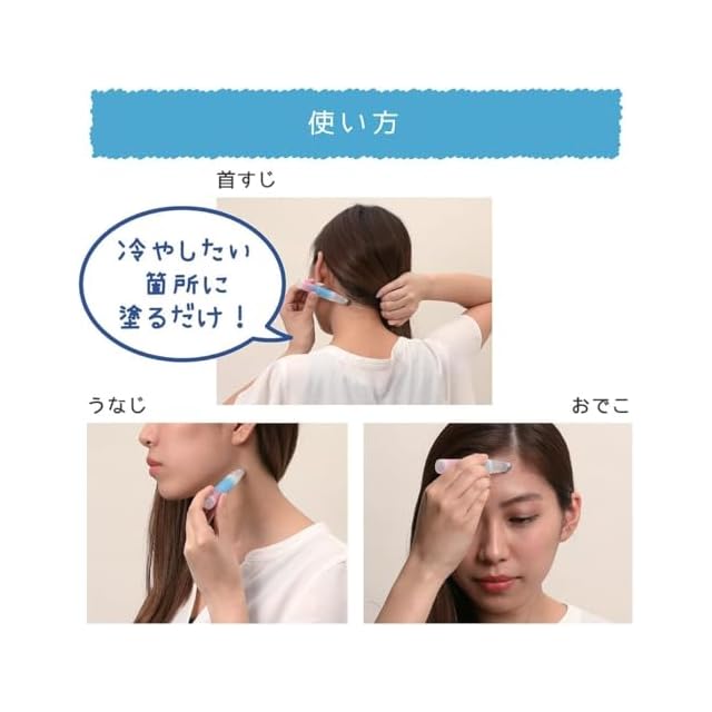 商品説明:首すじ、うなじにさっと塗るだけ、瞬間冷却、キーンと冷える、氷感ネッククーラーです。夏の満員電車や信号待ち、うんざりするほど暑い時にさっと塗るだけで、首元やうなじが爽快クール。爽やかなアクアシャンプーの香りです。さらさらパウダー配合で、お肌をさらさらに維持します。