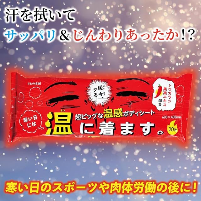 超ビッグな温感ボディシート!汗・ベタつきをしっかりふきとる!1枚で全身ふける厚手大型シート