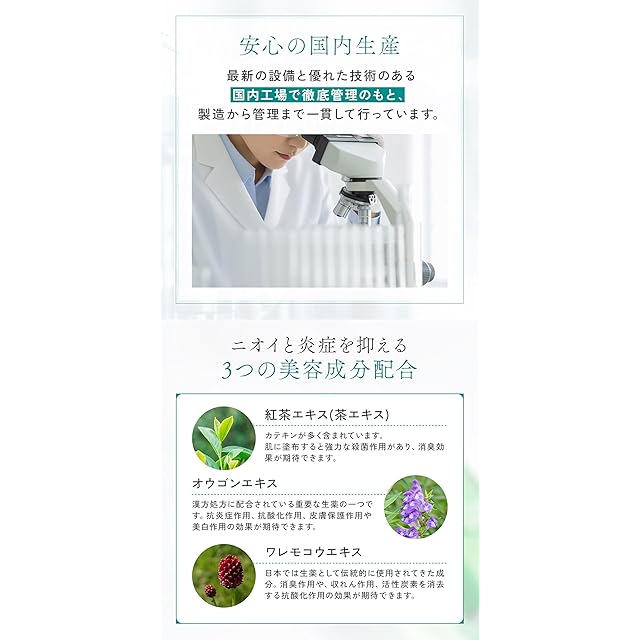 ✅【美容成分配合】紅茶エキス、オウゴンエキス、ワレモコウエキスでニオイと炎症を抑えます。