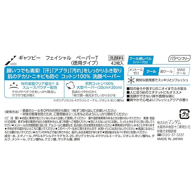 GATSBY(ギャツビー) フェイシャルペーパー 洗顔シート メンズ 徳用 セット 42枚×3個